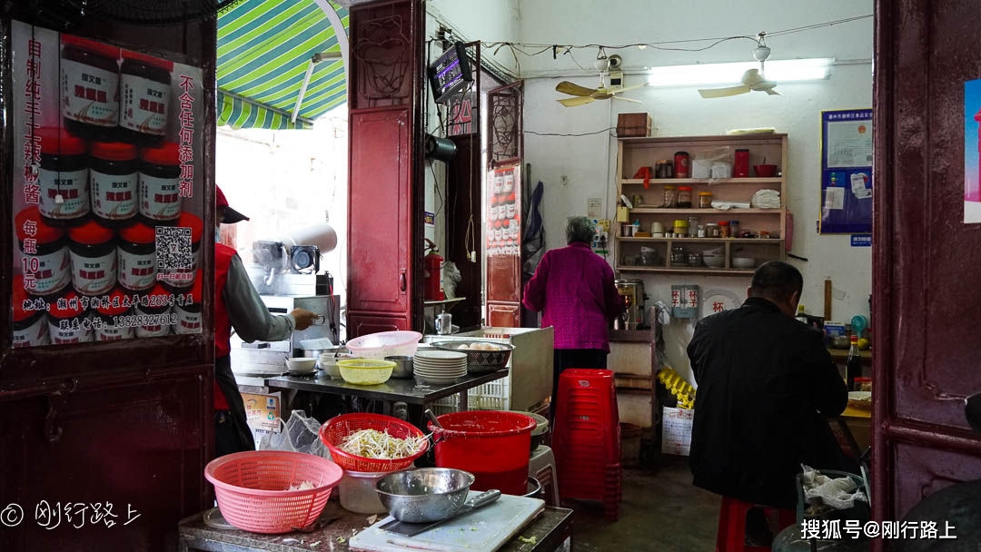 看起来年代久远,面积不算大的一间铺子,一眼就能看完整个店铺,甚至连招牌都不是很起眼,感觉一不注意就错过了。但是一靠近这家肠粉店就能闻到非常浓烈的酱香味,光闻味道就能让人馋得直流口水。