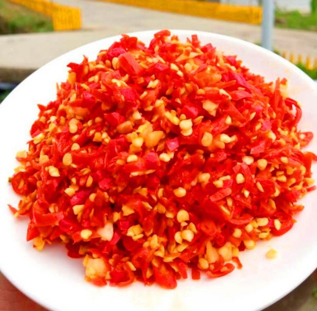 剁辣椒味辣而咸鲜,口味偏重,可以增进食欲。在湖南,几乎家家户户都会做一坛剁辣椒,加了它才是湘菜的味道。