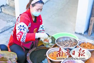 春节期间,卢伯一天卖掉上千只薯包籺。