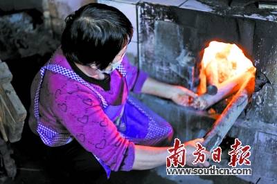 在高州宝光街道西岸缅茄村一家不太起眼的民宅里,李妈和媳妇早早就开始忙碌起来。媳妇一边加水搅拌一边快速搅动锅里的番薯粉,随着水汽蒸发,番薯粉逐渐变得黏稠;李姨则在仔细地制作馅料,猪肉、虾米、花生等经过精心的调味制作,散发着诱人的香气。一切准备就绪,三五张墨绿色的冬叶,来一勺煮好的番薯粉糊,然后依次加入馅料,熟练地折叠包裹,然后整齐地摆放在蒸屉上。此时,灶里的柴火烧得正旺,不时发出“噼里啪啦”的响声,似乎在催促着她们加快动作。