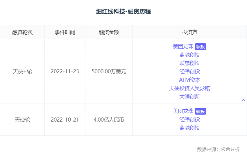 融资丨「细红线科技」完成约5000万美元的天使轮融资,美团龙珠领投
