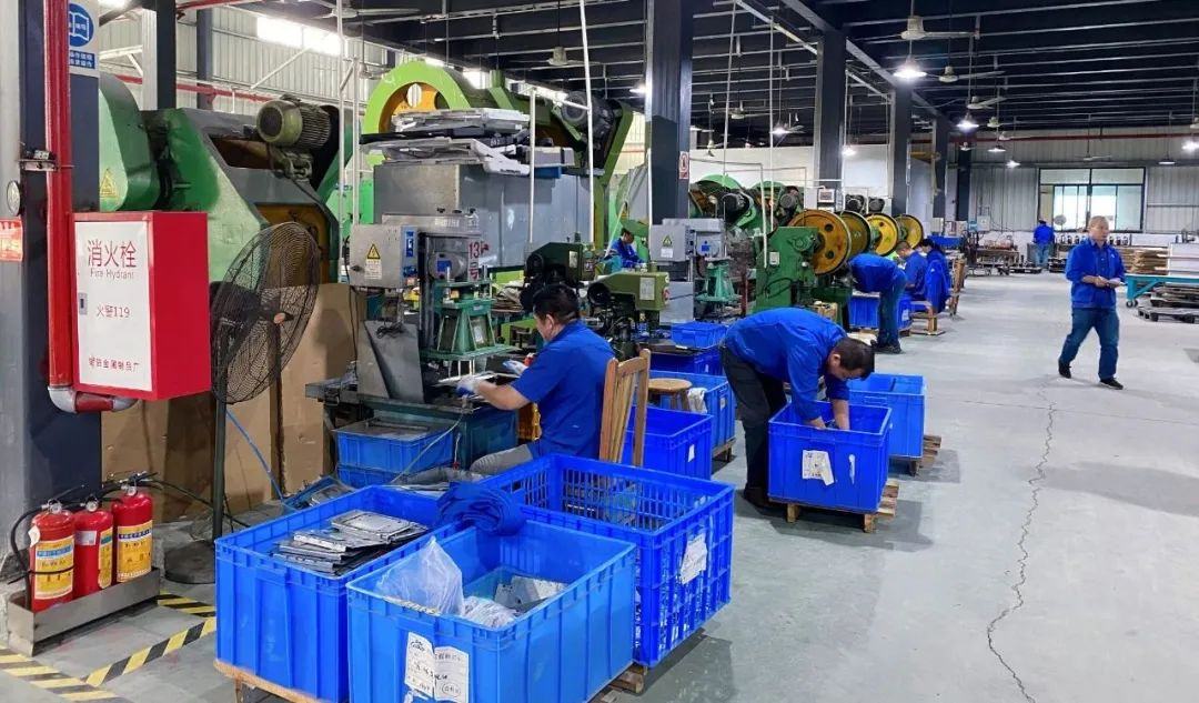 创业邦走访歌谷车载冰箱配件车间,穿着蓝色工服的女员工在忙着处理一个个配件,冰箱门把手、盖子、冰箱门、拉手,机器生产出来后,还需要人工再进行一些细节处理。男员工则负责处理金属配件。