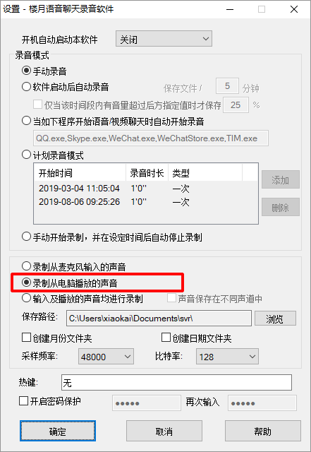 4,因为是要在电脑版QQ上对语音消息进行无损内录,因此设置为“录制从电脑播放的声音”,然后点击“确定”按钮。