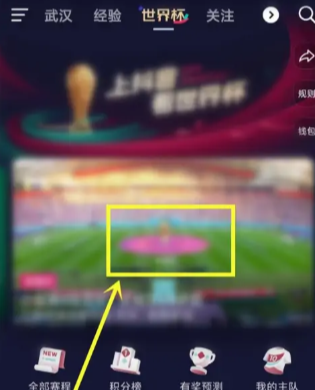 打开抖音app首页,进入世界杯专题界面,点击上方“比赛直播入口”。