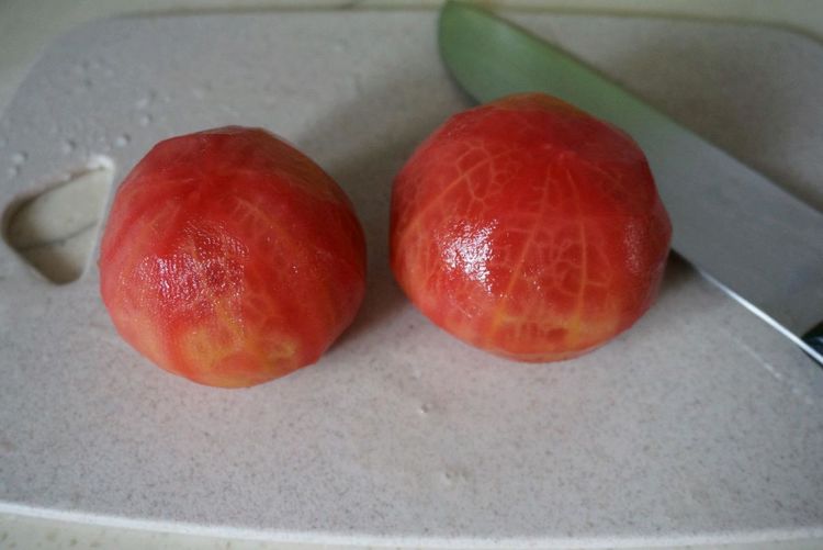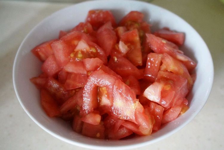 3、西红柿去皮后切成小丁备用。