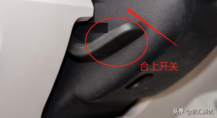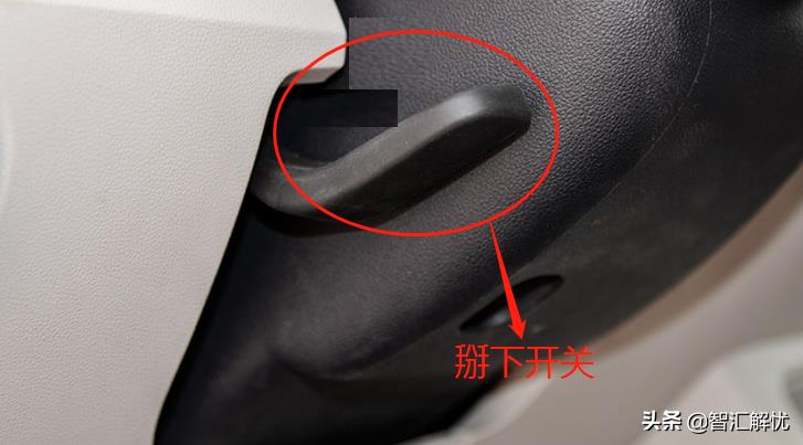 2、进入驾驶室之后可看到方向盘的调节开关在方向盘的正下方的位置