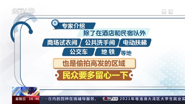 另外,专家介绍,除了在酒店和民宿以外,在商场试衣间、公共洗手间、电动扶梯、公交车、地铁等地也是偷拍高发的区域,民众要多留心一下。(总台央视记者 张岗 李志贵)