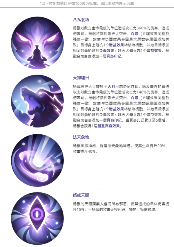 每层效果可使杨戬免疫1次技能伤害,最大叠加3层,无法驱散,持续至战斗结束。