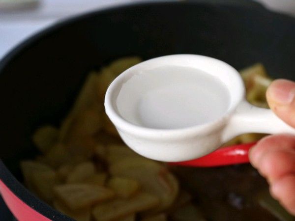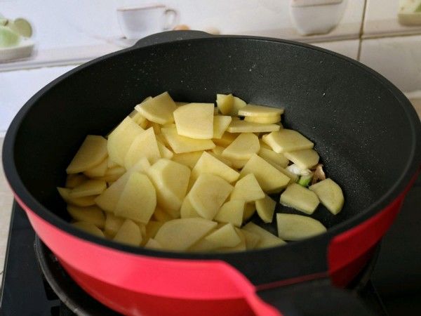 1、马铃薯增加锅中以后,我们要在锅中倒一些水,否则的话马铃薯非常容易粘在底锅。
