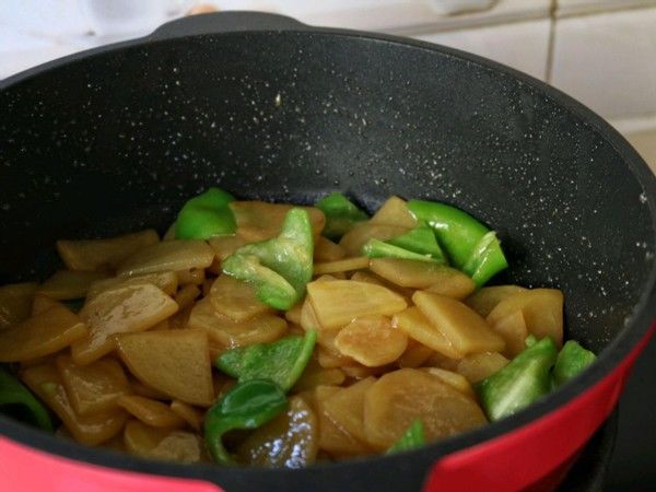 今晚我又买了一些辣椒和马铃薯,提前准备回家了再做一次这一青椒土豆片。回家了以后的第一件事便是先焖了一锅白米饭,这一菜配白米饭,味儿确实很好,每一次自己都能吃上满满的一盘,再加上一小碗白米饭。