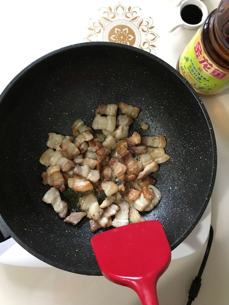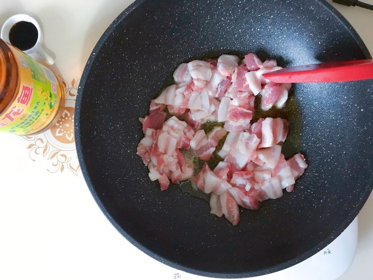 3、油可以选择菜籽油,五花肉要先用小火煸炒一会,主要是将油煸炒出来,煸炒到微焦的程度,这样吃起来就不会觉得油腻了。