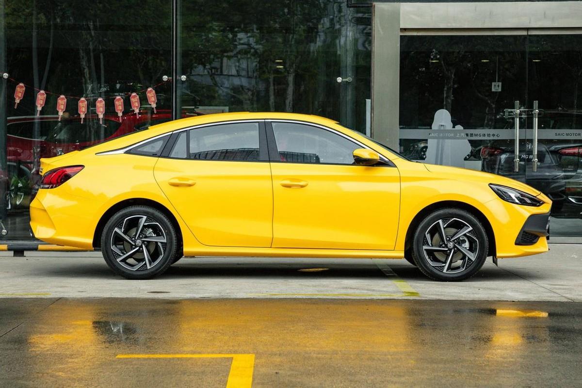 车身侧面,名爵5的视觉效果稍显紧凑,毕竟其整体尺寸也不大,但名爵5的车侧线条却依旧动感,两段式腰线强调了肌肉感,车窗上沿的镀铬装饰条也较为舒展。同时,名爵5还配备17英寸双色轮毂,熏黑的工艺配合独特的造型显得较为吸睛。配色方面,名爵5同样以时尚为主,比如其主推的“核能黄”,进一步提升了战斗感,同时其还提供赛博灰、冲浪蓝等配色。但是,名爵5顶配的潮越青奢限定版车型仅提供“核能黄”配色,稍显单一。