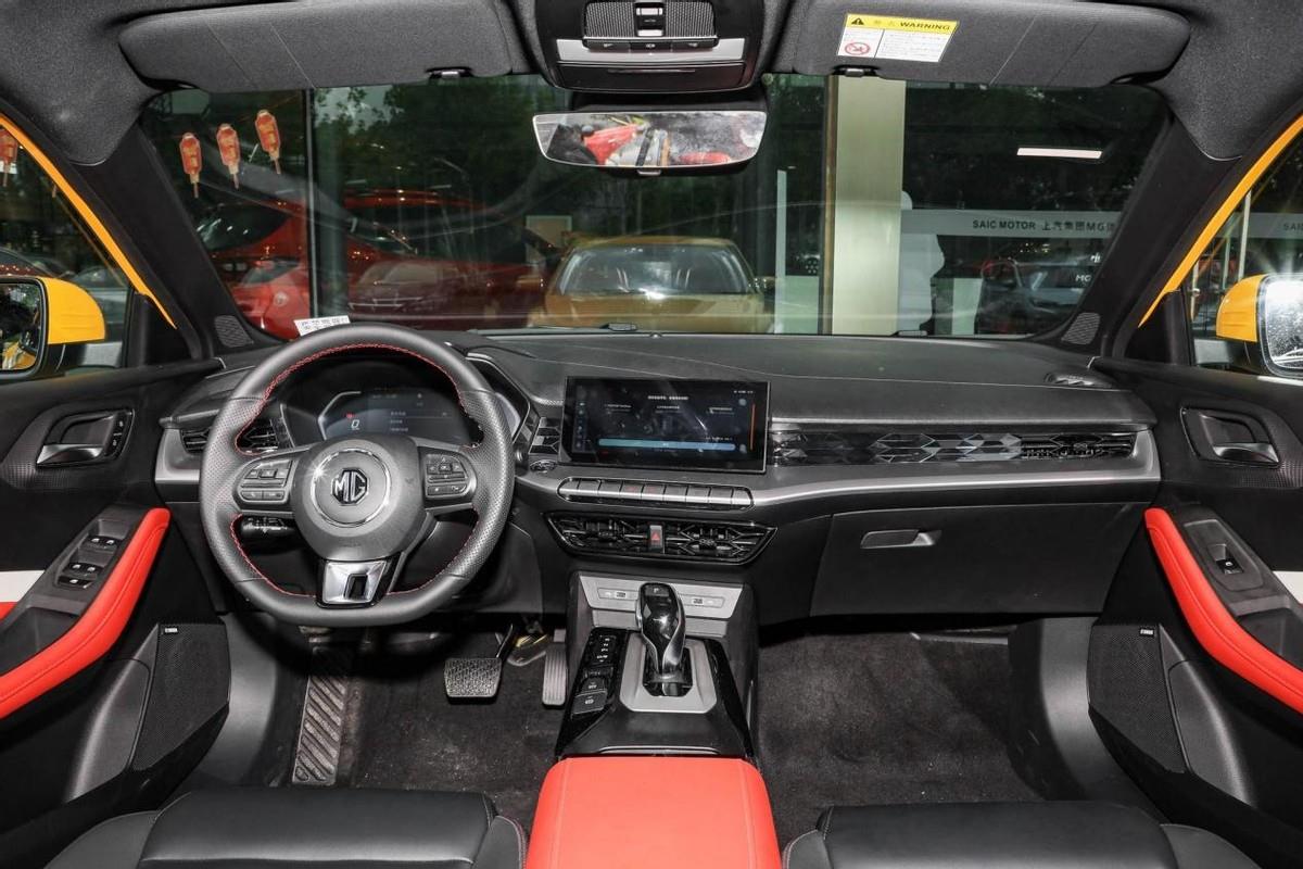 当然,外观只是用来彰显自己的个性,或者说是给别人看的。内饰才是自己每天切身看到、感受到的,名爵5内饰提供两种配色——骑士黑、黑色 日冕红,我个人更建议年轻人选择双色内饰,毕竟双拼色能提升档次感,而红色也能提升战斗感。同时,名爵5的内饰布局以驾驶为中心,其中控屏向驾驶者一侧倾斜。而10.25英寸中控屏与12.3英寸组合式液晶仪表盘配合,也能体现科技感,并且名爵5车内还保留了部分实体按键,兼顾了基础的实用性,虽然其内饰的科技感没有做到极致,但我个人比较喜欢这样组合式的设计。