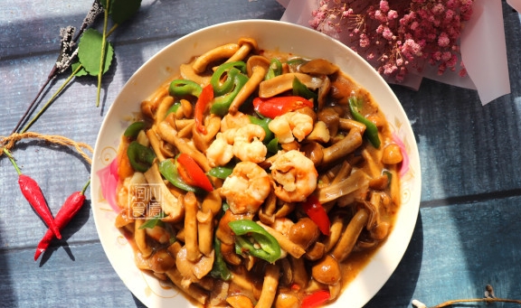 虾仁炒滑子菇的做法