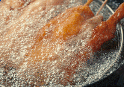 每天放学,我与同学先闻到香味,再听到“滋啦滋啦”的油炸声,然后肚子就叫了起来。大家“不得不”掏出身上仅有的一两块钱,买一根炸甜不辣、一串炸土豆,撒上厚厚的辣椒粉,吃完头脑清醒,回到家能干两大碗米饭。日日如是,一学期长胖了15斤。