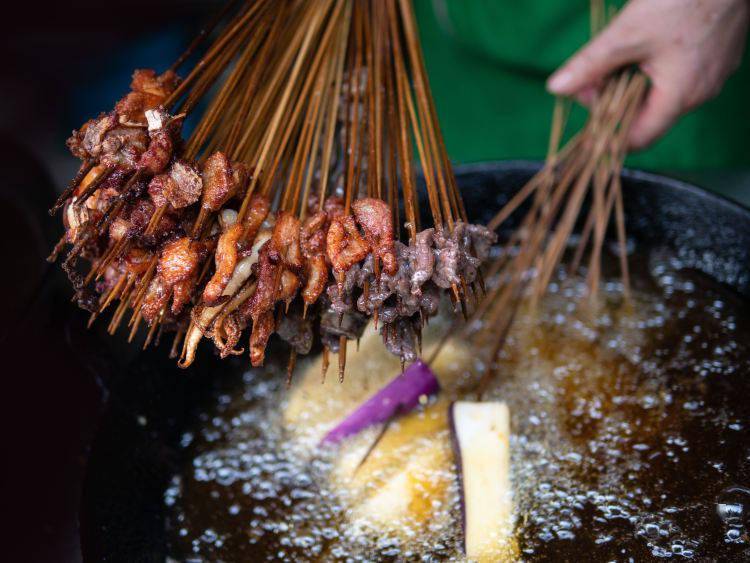 炸串的售卖方式与麻辣烫类似,自选品类,然后炸!/图虫创意