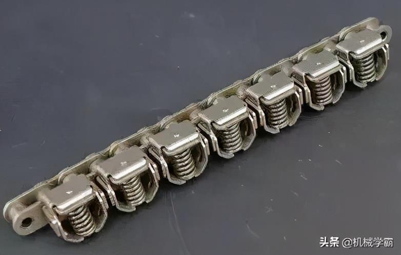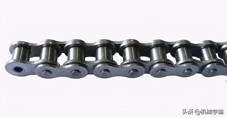 链条是与链轮连接并传递动力的机械部件,链条长度以链节数来表示。链节数最好取为偶数,以便链条联成环形时正好是外链板与内链板相接,接头处可用弹簧夹或开口销锁紧。常用链条有滚子链和齿形链,齿形链多用于高速或精度要求较高的场合,但是成本较高,结构也较复杂。