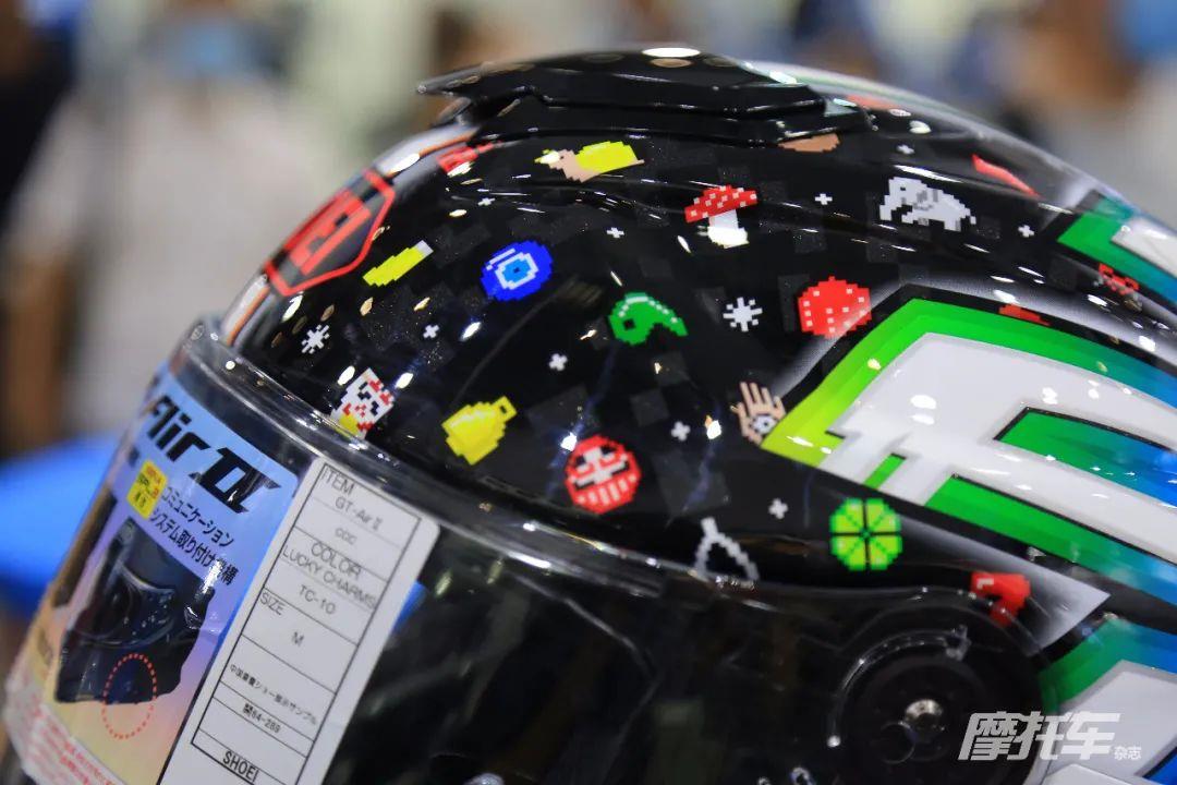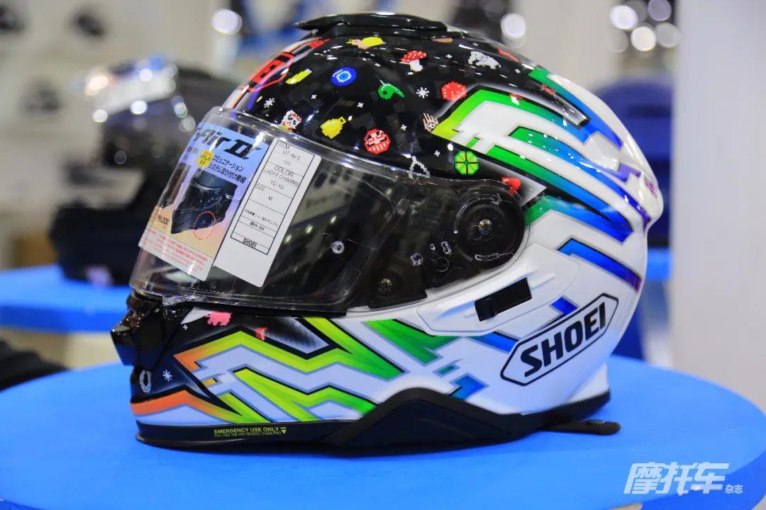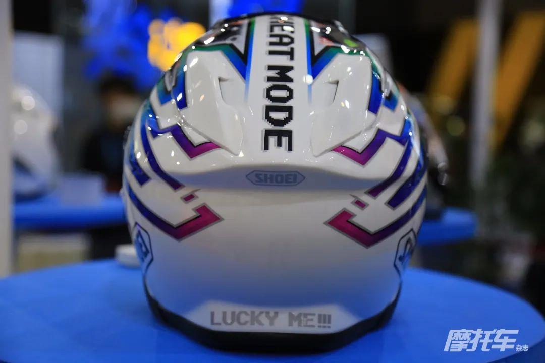 此次摩博会,SHOEI国内总代理风火轮(北京)摩托车有限公司展台上,带来了国内在售的X14、GT-air Ⅱ、Z7、J-Cruise2等多款头盔,当然,现场最瞩目的还是两款SHOEI GT-Air Ⅱ全新花色,中文名称分别是幸运符和全景,两款花色的发布也让车友有了更多选择。