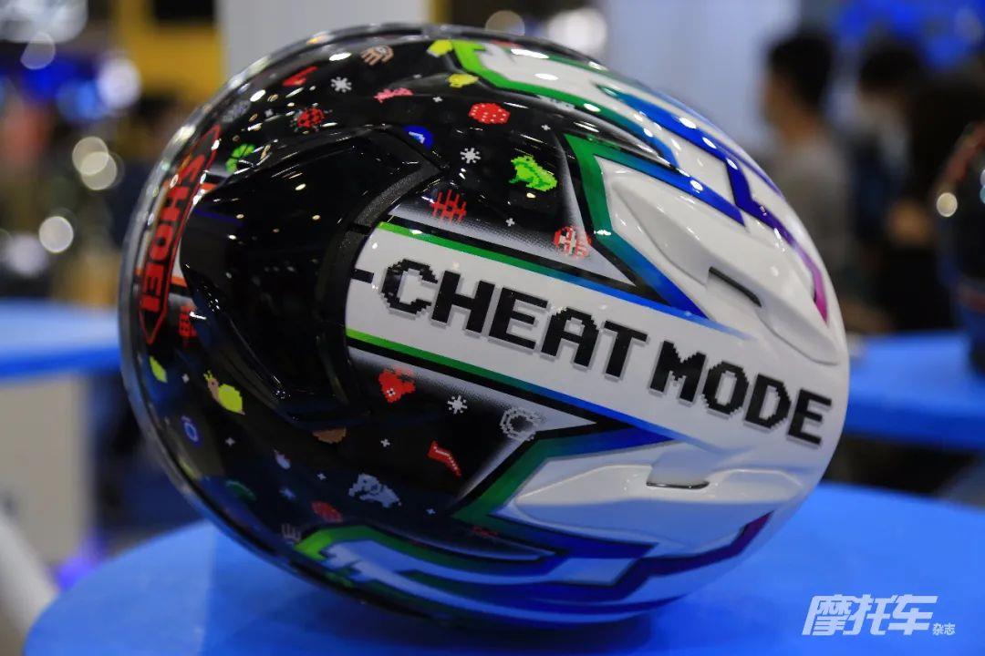 幸运符配色个人觉得很有意思,很多玩过8位小霸王游戏机的车友看到这款盔应该会有所共鸣,这款盔的设计理念为“幸运、吉利”,头盔上部集合了众多复古游戏和世界各地的幸运符,并以像素块的形式呈现出来,仔细看的还能看到中国汉字“幸”和“福”,中国元素亮眼,很有意思。头盔顶部还有“CHEAT MODE”(无敌模式)字样,头盔后部也有“LUCKY ME!!!”字样,寓意着戴上这顶盔有着无敌、幸运的意思。整体配色为黑白元素,配合了一些渐变颜色,也增显了幸运的寓意。