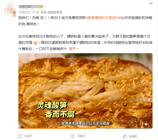 △最近连麦当劳都出了“螺蛳粉味”汉堡 / 微博