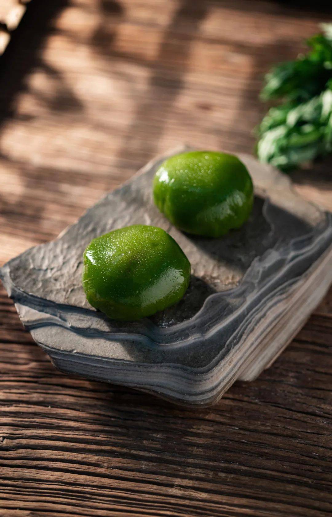 新鲜的艾草汁裹上糯米面团,加入豆沙或枣泥等内馅,艾草的苦香和豆沙的甜腻搭配得宜,才成了软软糯糯的青团。
