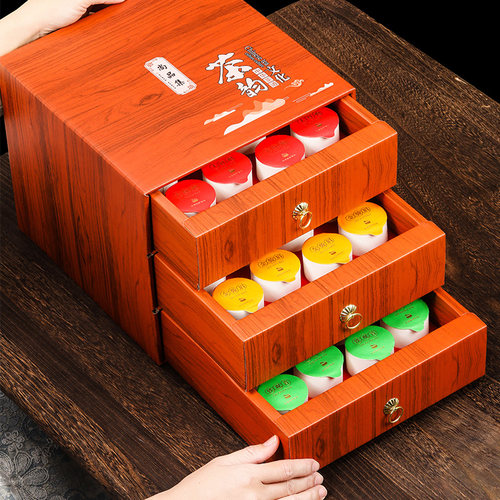 一次喝遍三大茗茶,过年过节送礼佳选!阅客三层茶叶组合礼盒!三层精致抽屉式礼盒,精装小泡,方便取用,有铁观音12罐+金骏眉12罐+大红袍12罐,自喝送礼很有档次。