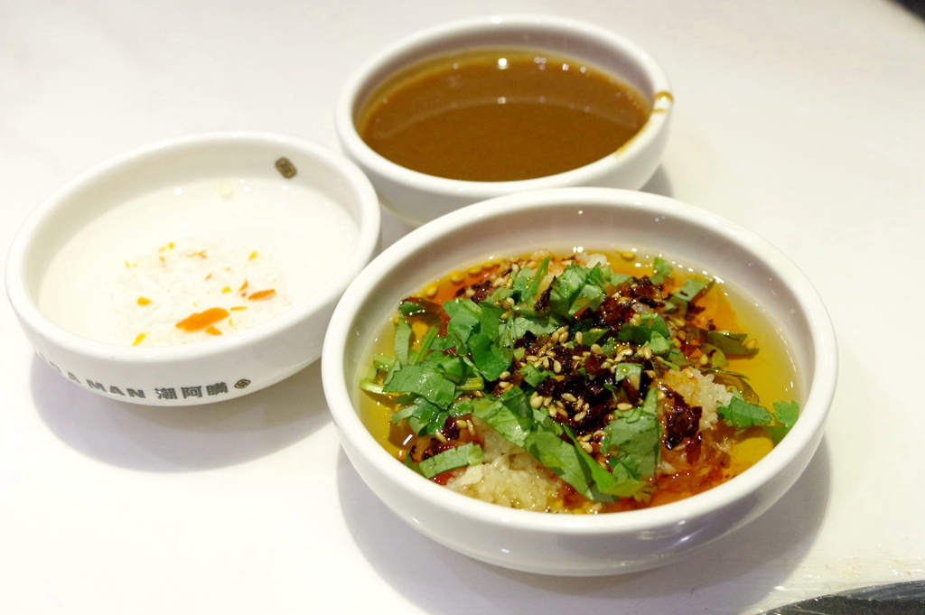潮州那边吃东西味碟的搭配非常讲究,甚至有“一菜一碟”的习惯,因此我在调味区折腾出了这样的搭配