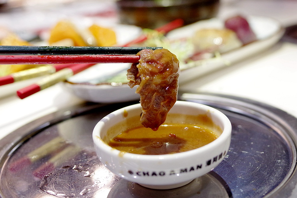 蘸一点沙茶酱,果然吃起来香浓可口,非常满足