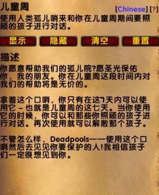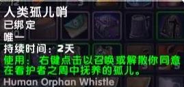 3、前往教堂区寻找【孤儿监护员南丁格尔】进行对话,获取儿童周任务并获得人类孤儿哨(右键克召唤)。