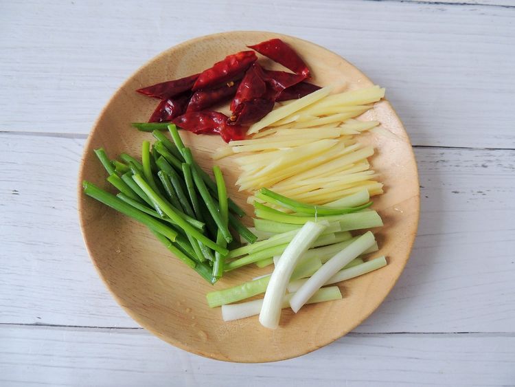 食材:鸡胸肉、桃园建民牛肉耗辣椒、豆腐乳、淀粉、胡椒粉、葱姜、香菜、料酒