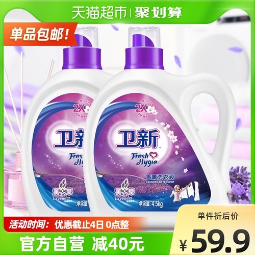 Walch威露士卫新薰衣草洗衣液4.5kg*2件今日售价99.9元,下单立减40元,可领取6元优惠券,及88-5元猫超券,实付48.9元包邮,超值低价了。