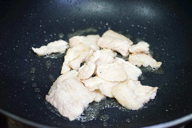 3、猪肉选择带肥肉的,如果不喜欢吃肉可以不放,但是锅里要多加点油来炒包菜。