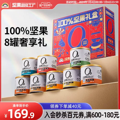 天虹牌8罐纯坚果礼盒1245g售价209.9元,领取55元优惠券,APP端可领200-20坚果购物券,到手144.9元包邮。