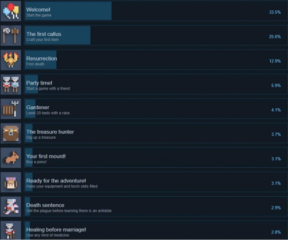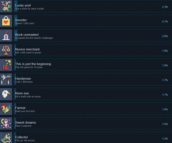 以上就是关于全部成就列表的简单分享,不过当前不支持中文,喜欢像素生存题材的小伙伴可以关注下游戏。