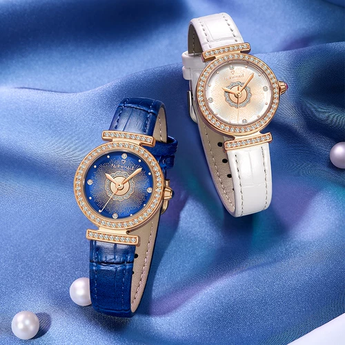 摩登与复古的碰撞,表盘采用优雅太阳纹表盘,简约流畅设计,29mm表盘,厚11mm,表面皓钻镶嵌,梦巧精致,生而优雅,真皮表带,极薄灵动,进口石英机芯,30米防水系数。