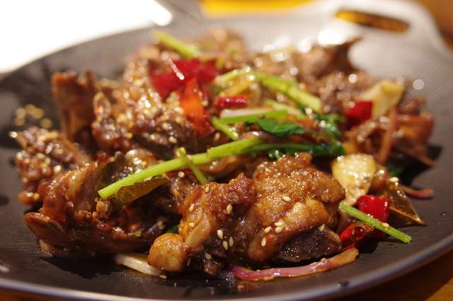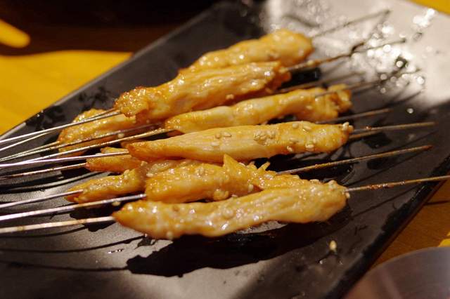 烤鸭胗:切成小块的鸭胗,吃起来脆脆的,很好地体现了这种食材独特的质感。