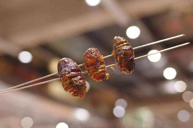 山东以北视为珍宝的烤蚕蛹这里也有。不过我从来就没觉得这东西好吃,虽然我能吃,但是抱歉我只能说没吃过的尝尝新鲜可以,不喜欢的会像我一样嚼巴嚼巴最后吐出一口渣渣。