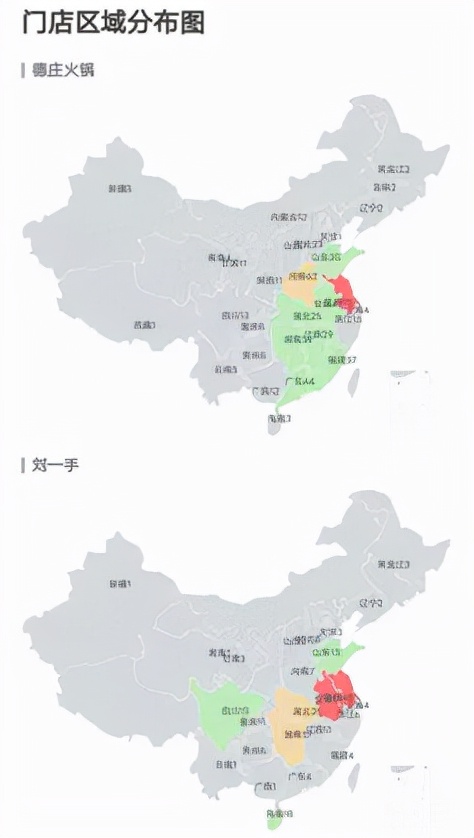 从刘一手和德庄火锅的全国区域分布来看,重庆火锅品牌在北部和西部的门店数量较少;从城市等级来看,在三线及以下的下沉市场占有率较低。未来,重庆火锅需调整布局战略,填补空白市场,扩大品牌规模,深耕下沉市场能够助推重庆火锅品牌早日实现多城市全覆盖的目标。