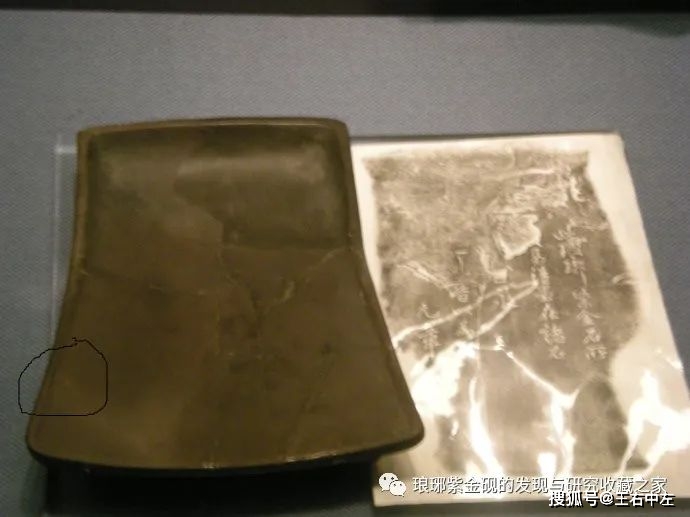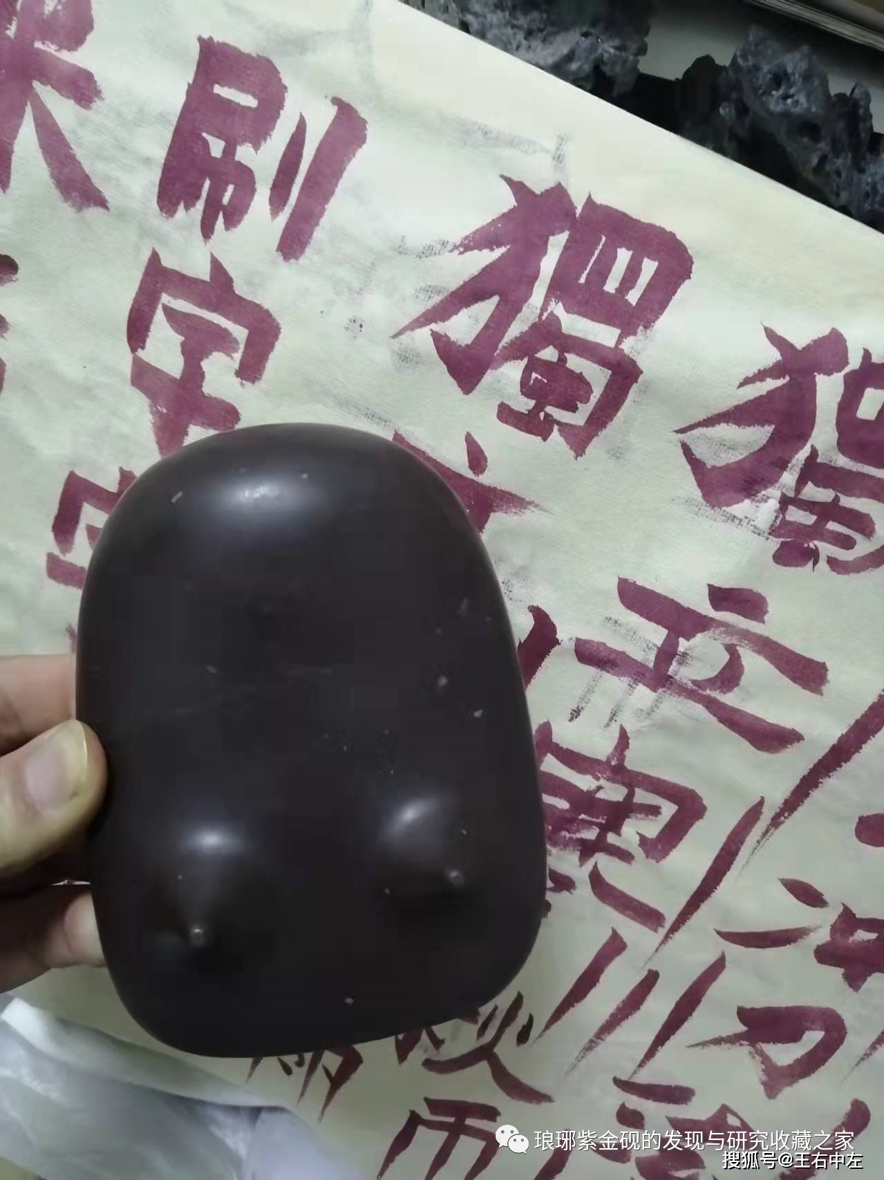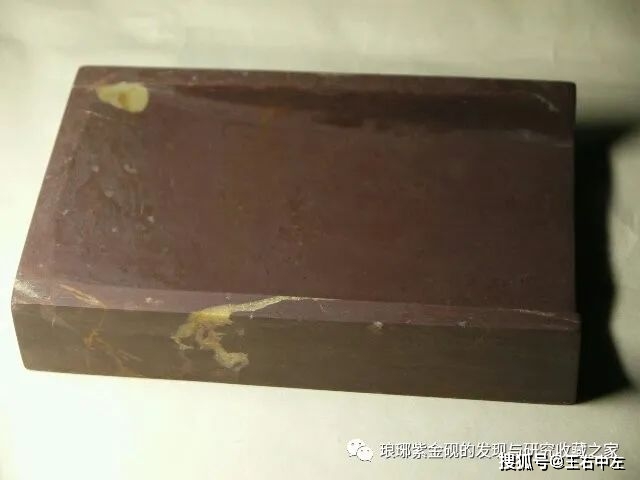 “元大都遗址出土的琅琊紫金石砚。砚堂左下角有橘红色圆斑点。观实物看的更清晰。