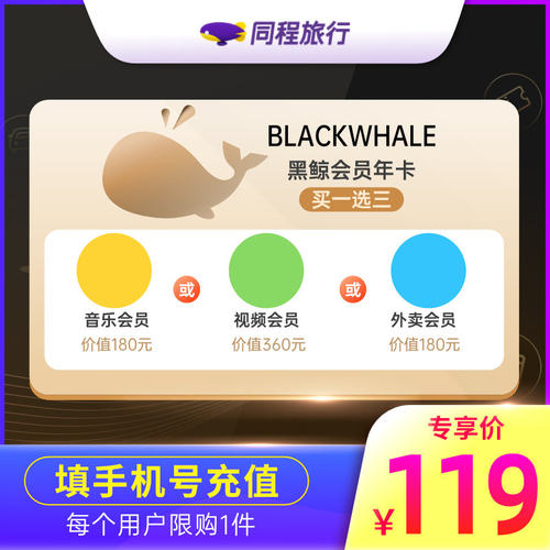 同程旅行 黑鲸会员年卡 送腾讯视频年卡