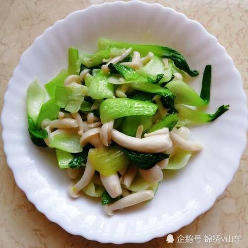 食材:白玉菇、青菜(小油菜)、姜、蒜、生抽、白糖、盐、鸡精